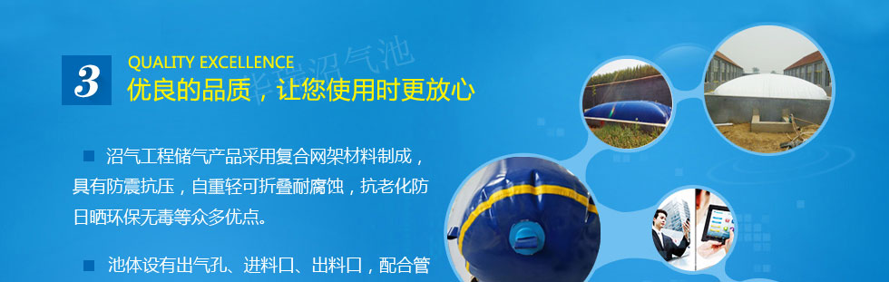 生產工藝,高性能的檢測設備和完善的質量保證體系,為客戶打造了一批精致的沼氣氣囊設備。隨著國家擴大內需加大建設投資力度,我們將獲得更多的發展機遇。公司始終堅持人才第一,科技興企的發展戰略,與很多知名企業建立了良好的浮罩式沼氣池合作關系。公司在成立之初,即深刻思索服務管理發展之間的關系,遵循拓展提高盤活多維的沼氣氣囊經營方針得了各種贊譽。高效的宗旨使本公司在這日新月異的經濟大潮中大步前進。公司遵循“客戶至上、簡明高效、創新無限、盡心盡力”的原則,打造了一家擁有自主知識產權的高規格浮罩式沼氣池公司。軟體沼氣池